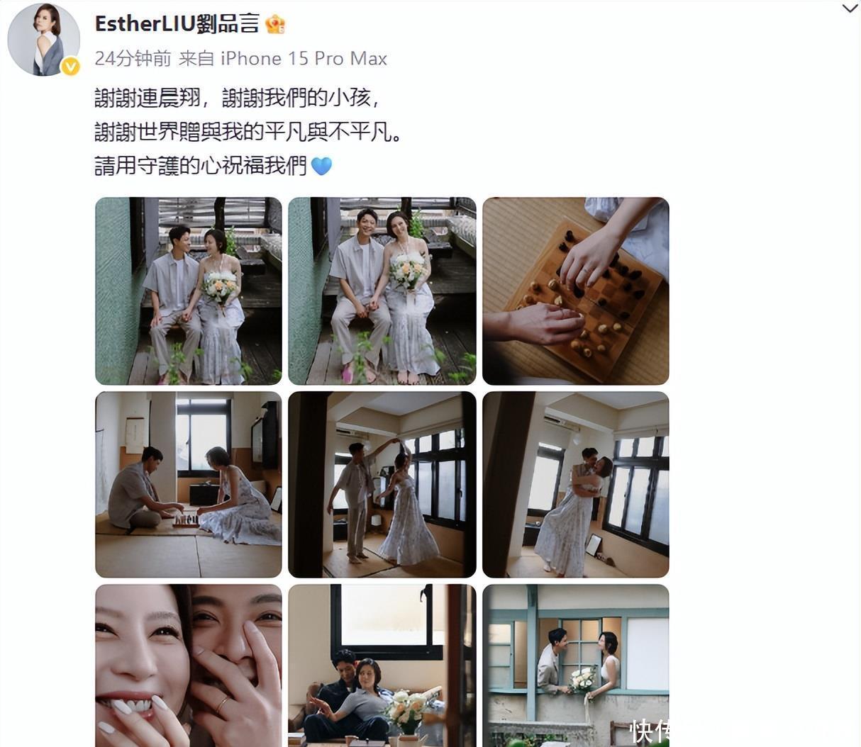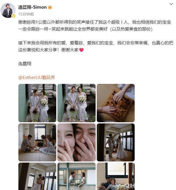 据此前报道,今年6月9日,刘品言与连晨翔官宣结婚,女方已有身孕。